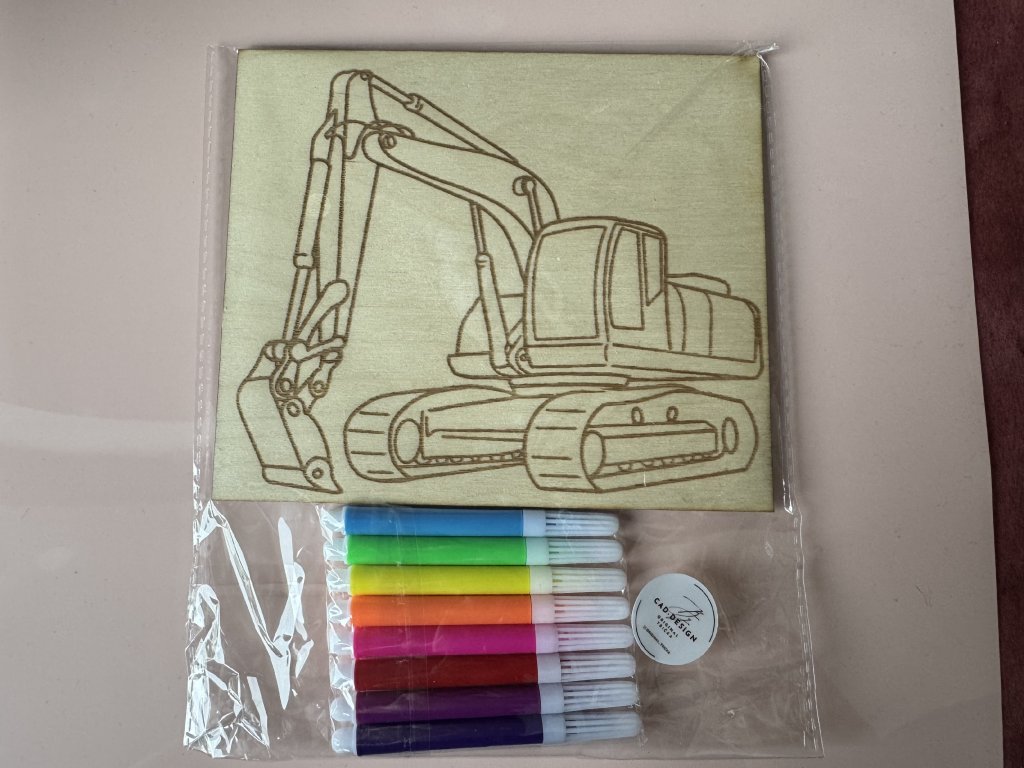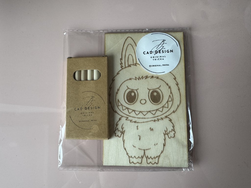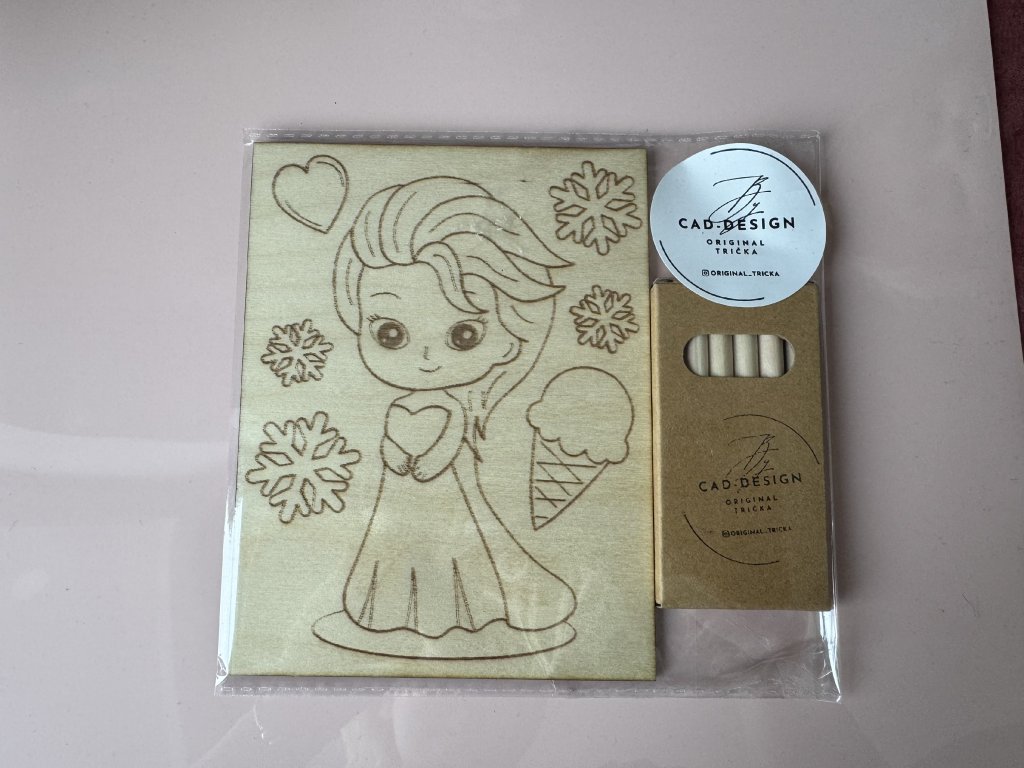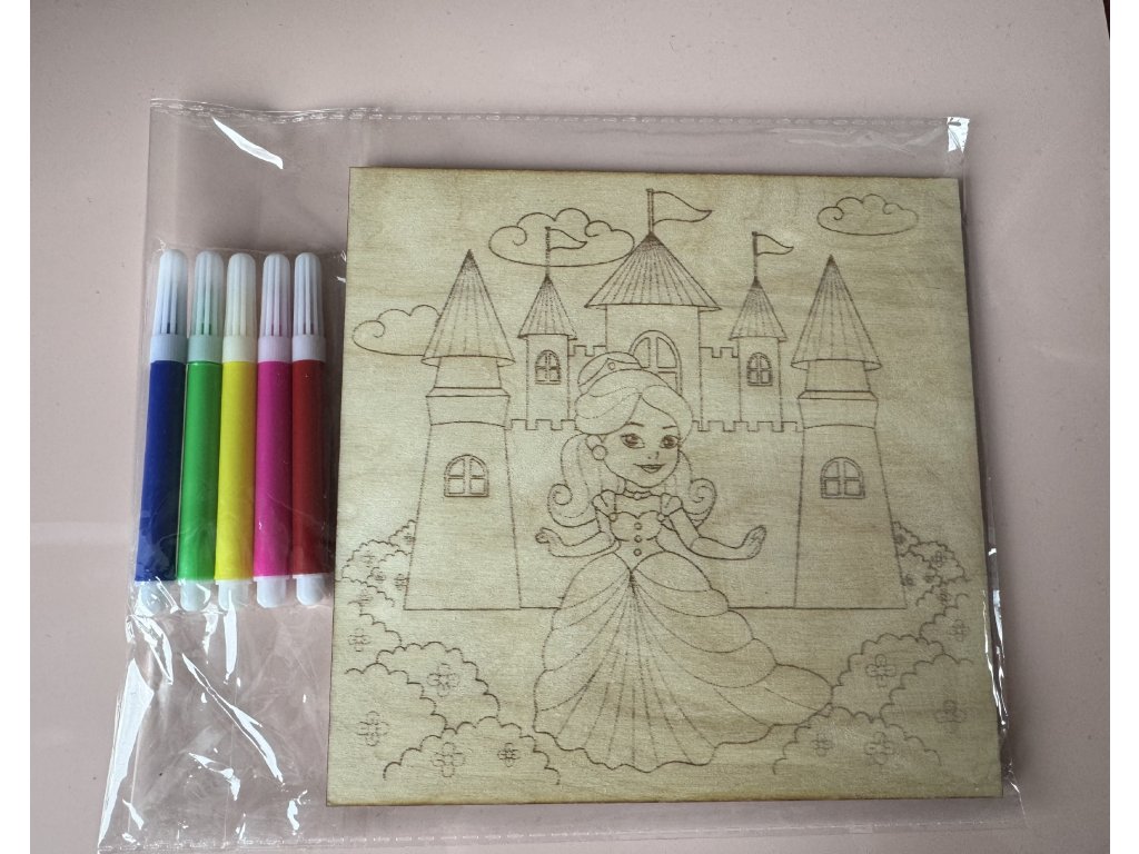 Každý motiv je vygravírovaný do dřeva – děti si ho mohou vybarvit fixami nebo pastelkami a potom si svůj výtvor vystavit jako obrázek do pokojíčku 💛