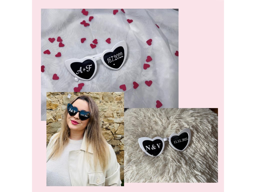 Brýle nabízíme ve dvou barevných variantách – černé a bílé, takže je snadno sladíte s celkovým stylem svatby.